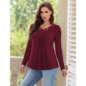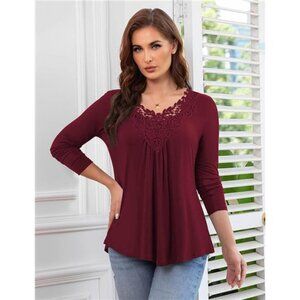 *Plus size tops for women 2xl feature: long sleeve lace crochet blouse, v neck, loose fit, basic solid color design
