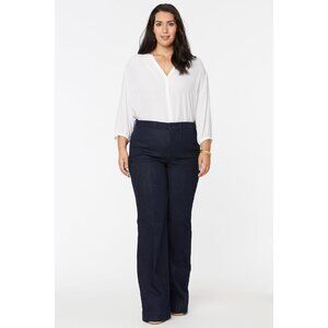 Features: Eye-catching wide-leg trouser jeans with a sleek, streamlined look and a flattering silhouette. Incorporates exclusive Lift Tuck Technology—proprietary slimming panel with a criss-cross design—giving you a smooth, sculpted front and curves-enhancing back. Designed with classic details like back patch pockets, a zip fly, and a button closure for a timeless vibe.