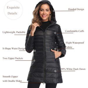 Features: Ultra lightweight yet incredibly warm, this quilted puffer coat is a winter essential. It features a hood, front zipper closure, slim fit, and two cozy pockets. Slightly water-resistant and windproof, perfect for chilly winter days or layered over your favorite sweaters. Its packable design makes it easy to fold into a small pouch—great for travel, outdoor activities, or everyday errands. The soft, breathable fabric feels comfortable and cozy, and it gives you a sleek silhouette.