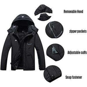Windproof: 1) Adjustable hook & loop fastener cuffs help seal in warmth. 2) Internal drawcord hem, detachable and adjustable storm hood help to keep wind out. 3) Wear resisting soft shell is highly wind resistant.