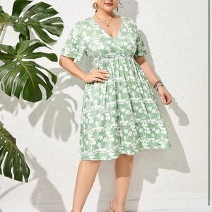 Embrace elegance with this green floral wrap dress. Perfect for any occasion, it offers a flattering fit and stylish design.