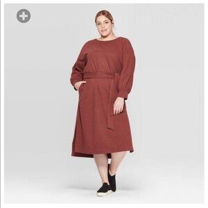 Women's Plus Size Long Sleeve Boat Neck Midi Sweater Dress