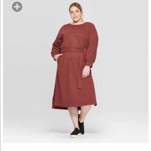 Women's Plus Size Long Sleeve Boat Neck Midi Sweater Dress