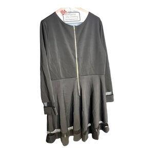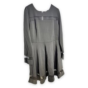 Women’s Plus Size 16 Chiffon Inserts Long Sleeve Mini Skater Dress Black