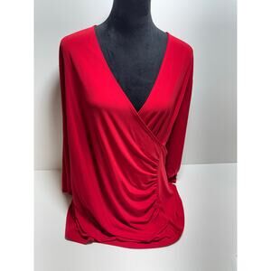 Women’s Plus Sz 3/4 Sleeve Stretchy V Neck Red Blouse Quiet Luxury 2XL Career