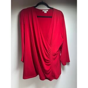 Women’s Plus Size 3/4 Sleeve V Neck 2XL Red Blouse Quiet Luxury Blouse Liz Claiborne
