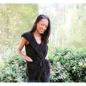 Style: sweater vest - waist tie - hooded - faux fur - sleeveless - please see all pictures !!