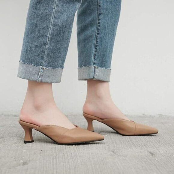 Women's Pointed Toe Comfy Kitten Mules Low Heels Slip On Backless Pumps Slide Sandals Office Shoes