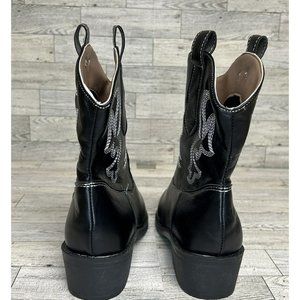 For Sale is this Pair Women's Pointed Toe Embroidered Sleeve Boots Thick Heels Mid-Calf New Sz 10US