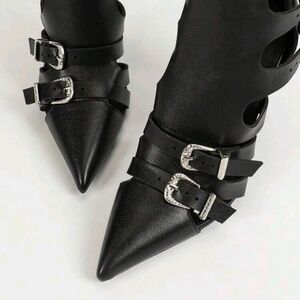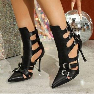 Women's Pointed Toe High Heel Gladiator Boots With Hollow Metal Buckle,Elegant
