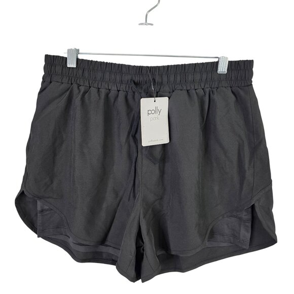 Womens Polly Park Black Track Shorts Lined Polyester Stretch 4.5" Inseam Size XL