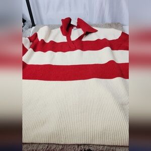 Women's Polo Pullover Sweater - A New Day Red Striped 4X