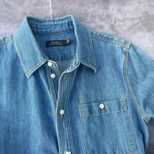 Women's Polo Ralph Lauren Light Blue Jean Denim Button Up Midi Spring Dress Sz 6