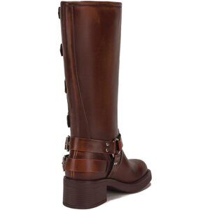 Women's Polyurethane Brown Squared Toe Knee High Tall Riding Motorcycle Boots