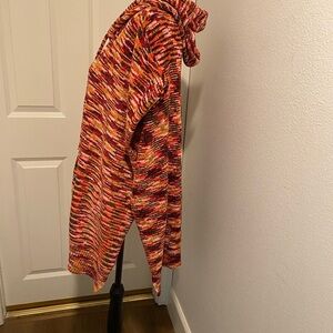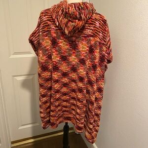Stay cozy and stylish with this multicolor chenille hooded poncho. It is a very oversized ‘one-size’ with the front pit to pit over 36” and the length 30”. I received it through overstock wholesale. It was originally for Free People, but there are no brand or store tags on it. New without tags (NWOT) and I have two available. Colors are primarily brown orange pink and gold. In excellent new condition. 🌷