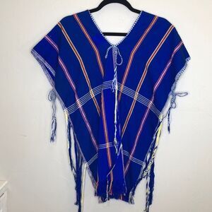 Women's Poncho Sweater Fringe Pullover Boho Hippie Festival Blue One Size