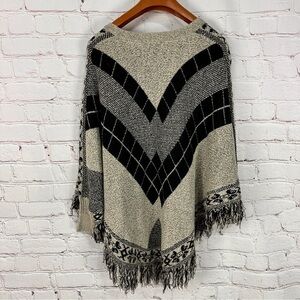 Womens Poncho Sweater size Large XL Oversized Fringe Hem Handkerchief Batwing