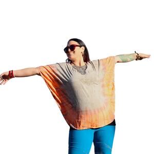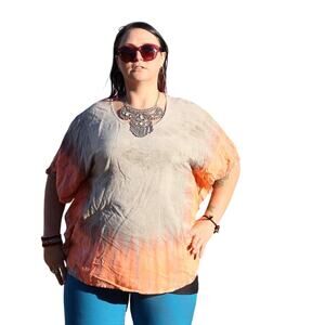 Womens Poncho Top 2XL Peach Grey Tie Dye Festival Hippie Biker