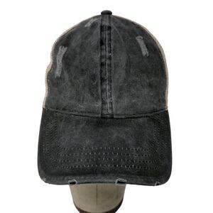 Women's Ponyflo Gray Denim Baseball Hat Cap Meshback Distressed One Size