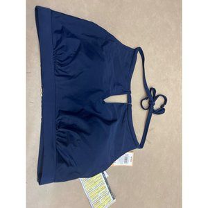 Women's Post Mastectomy High Neck Keyhole Bikini Top Kona Sol Navy Blue Large