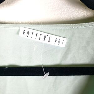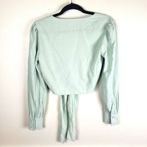 Women's Potter's Pot Mint Green Long Sleeve Crop Top Tie Shacket Size Small