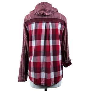 Women's PrAna Red White Anja Plaid Long Sleeve Button Cuff Hooded Popover Top M