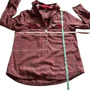 Women's PrAna Red White Anja Plaid Long Sleeve Button Cuff Hooded Popover Top sz Medium