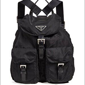 Womens Prada Milano 104 Black Nylon Shoulder Backpack Designer Handbag