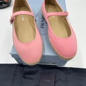 Women’s Prada pink canvas MaryJane Flats, size 37 made in Italy