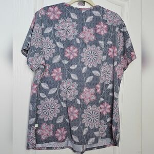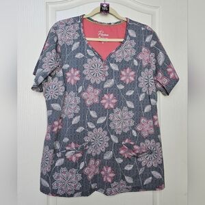 Women's Premiere Healing Hands Floral Short Sleeve Scrub Top 2X