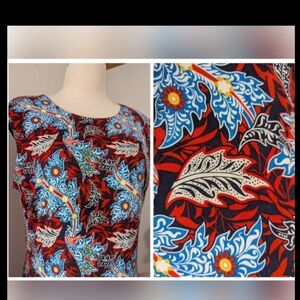 Premise floral dress, women’s large midi dress, sleeveless tailored dress, multicolor printed midi, office to evening dress