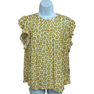 Women's Premise Smocked Blouse Sz Small Boho Gold Floral Print Top Loose NEW
