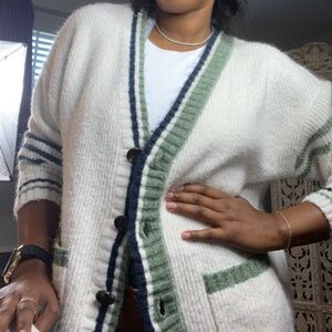 Women's Preppy B.P. Cream, Navy & Light Green Button Up Cardigan-Size Medium