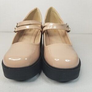 Women’s Preppy Nude Mary Jane Chunky Block Platform Heel Patent Academia Y2K 10M