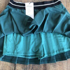 Women’s Preppy Pleated Athletic Skirt with Shorts Elastic Waist Green Large