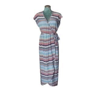 Women's Presley Skye Cap Sleeve Crêpe de Chine Maxi Dress Multicolor Fair Isle Print Silk Size S