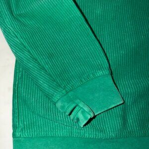 Lightweight sweatshirt with dropped shoulder seams from Pressbox brand. Corded distressed fabric for a vintage look. Thumbholes in cuffs