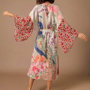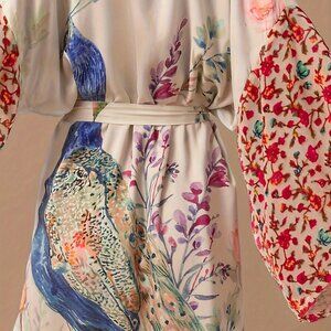 Women's Printed Beach Smock Peacock Pattern Printed Belt kimono robe