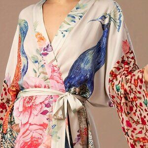 Women's Printed Beach Smock Peacock Pattern Printed Belt kimono robe
