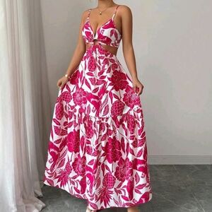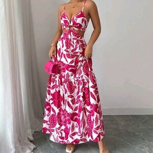 Women's Printed Cinched Waist Midi Dress, Suitable For Holiday, Casual