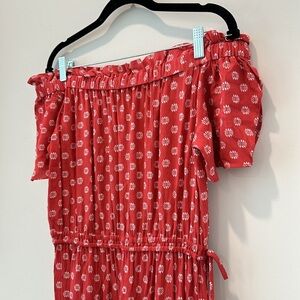 Tags: travel, pattern, billowy, 1 STATE, maxi dress, white, red, short sleeve, shirred, ruched, casual, errands, vacation, beachy, cruise, beach, summer, transition, outfit, date night, everyday, long dress, full length, shoulders, cinched, tassel, boho, pretty, feminine, festival