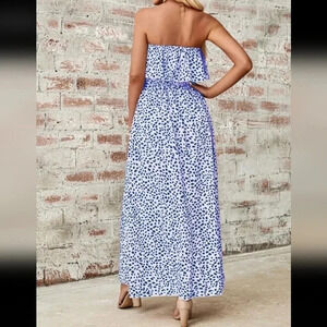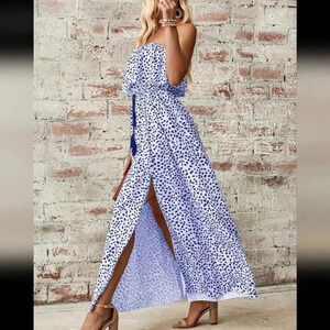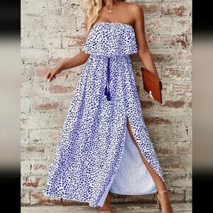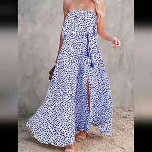 Women's Printed Strapless Maxi Dress With High Slit