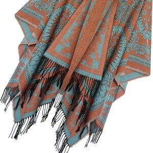 The fabric is soft and thick. It's reversible, cozy and warm. The generous size to keep you warm, great alternative to coat or jacket.
