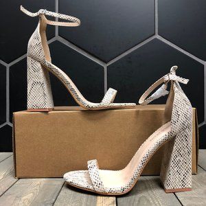 Womens Public Desire Natural Snakeskin Block Heeled Heels Summer Dressy Size 8