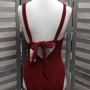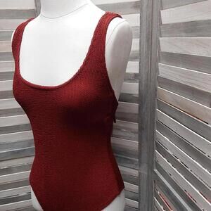 Lounge by the pool or splash in the waves wearing this Pucker Textured Bold Square Scoop Neck Medium-Coverage One-Piece Swimsuit from Kona Sol™. Designed in a solid color, this burgundy swimsuit has a pucker texture fabric for an attractive look. The double straps and an open back create chic style while the back tie elevates the look. Made with soft and stretchy fabric, this medium-coverage swimsuit offers flexible movement for comfy diving, playing in the sand or indulging in other fun activities. Add cool sunglasses and flip-flops to complete your summer look. * 1-piece swimsuit with scoop neck * Made with soft and stretchy fabric for comfy movement * Medium-coverage swimsuit with removable cups helps you stay confident * Open back with tie option creates an attractive look Color: Burgundy Material: 95% Polyester, 5% Spandex Material Lining: 100% Polyester Garment Style: Sleeveless, Back Tie Sheerness: Opaque Garment Details: Adjustable Strap Garment back type: V Back Swimwear Style: Full Coverage Bra cup construction details: Removable Cup Coverage: Medium UPF rating: No UPF Rating Care and Cleaning: Hand Wash & Line Dry or Lay Flat to Dry