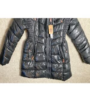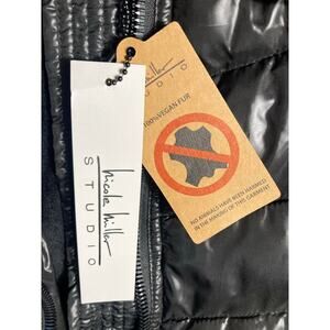 Womens Puffer Jacket Nicole Miller Studio 100% Vegan Polyester Large Black NWT