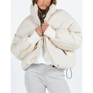 Women's Puffer Jacket Oversized Cropped Puffy Quilted Winter Jackets Coat Khaki