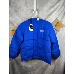 Womens Puffer Jacket Sz M Blue Lightweight Hoodie with Pull String Stretch Cuff
