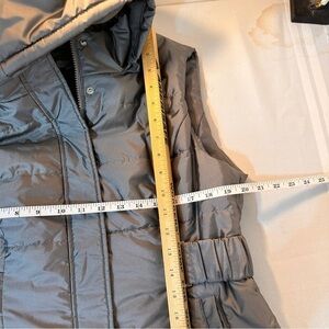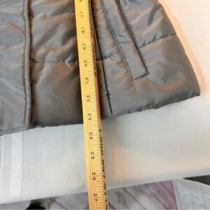 Womens Puffer Vest size Medium grey Sleeveless Hooded Fitted Zip Snap Outerwear
