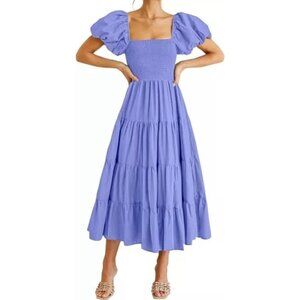 Women's Puffy Short Sleeve Square Neck Smocked Tiered Ruffle Dress